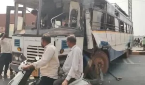 సదాశివపేట: సంగారెడ్డి జిల్లా సదాశివపేట సమీపంలోని జాతీయ రహదారి 65పై శనివారం ఉదయం భీకర రోడ్డు ప్రమాదం సంభవించింది. బైపాస్ రోడ్డులోని ప్రమాదకరమైన మూలమలుపు వద్ద ఆర్టీసీ బస్సు మరియు లారీ ఒకదానికొకటి ఎదురెదురుగా బలంగా ఢీకొన్నాయి.