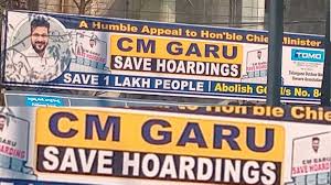 • మెట్రో పిల్లర్లపై విజ్ఞప్తి: ఎప్పుడూ రద్దీగా ఉండే మెట్రో పిల్లర్లపైనే “CM గారు.. సేవ్ హోర్డింగ్స్.. సేవ్ 1 లాక్ పీపుల్” అంటూ పెద్ద పెద్ద ఫ్లెక్సీలు ఏర్పాటు చేసి ముఖ్యమంత్రి దృష్టిని ఆకర్షించే ప్రయత్నం చేశారు.